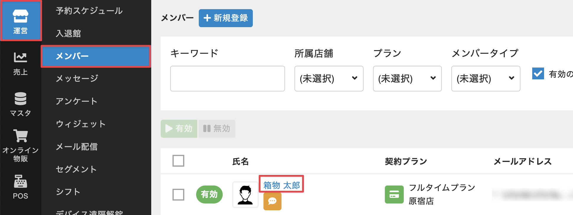 ・[未払]:プランの支払方法が現金決済、店頭カード決済、口座振替(hacomonoでの口座振替機能を利用していない場合)で、売上データが未登録