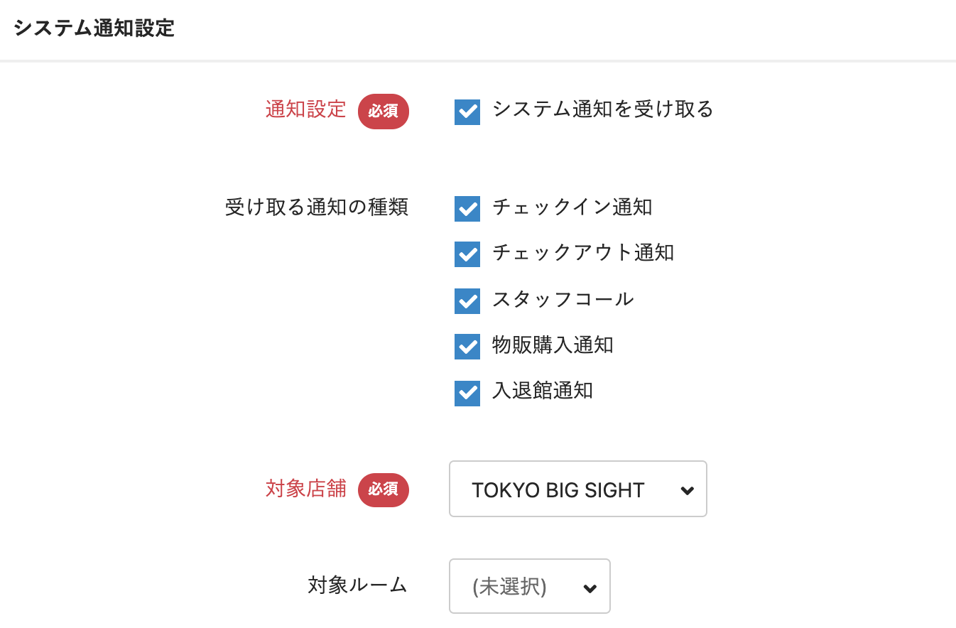 チェックイン・入退館・物販購入通知については以下をご確認ください。