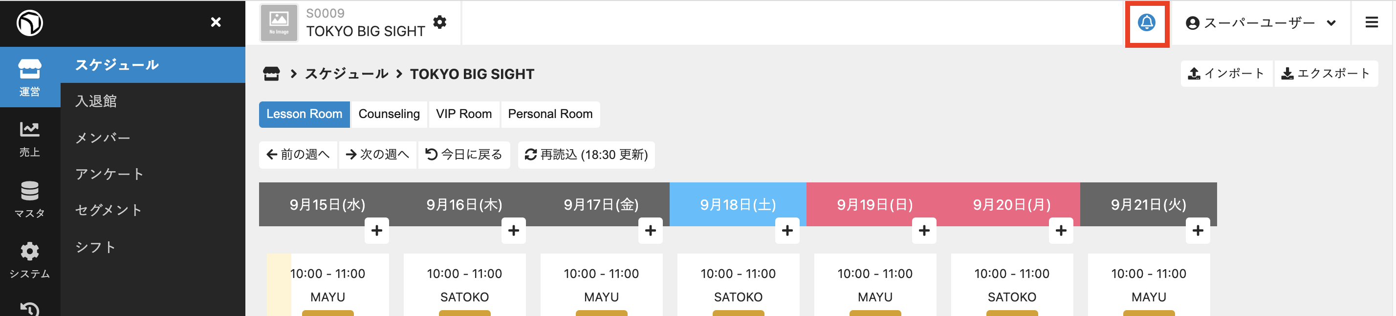 店頭iPad端末でチェックイン・入退館記録を受け付けた際、管理サイトにチェックインしたメンバーの情報を表示する「チェックイン通知」を受け付けることができます。