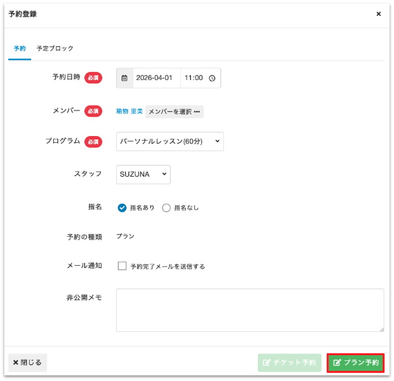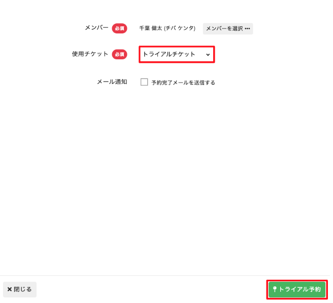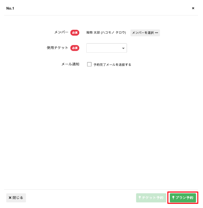 - 該当するレッスンを予約するためのプラン契約やチケット購入が完了していない場合は、先に手続きする必要があります。