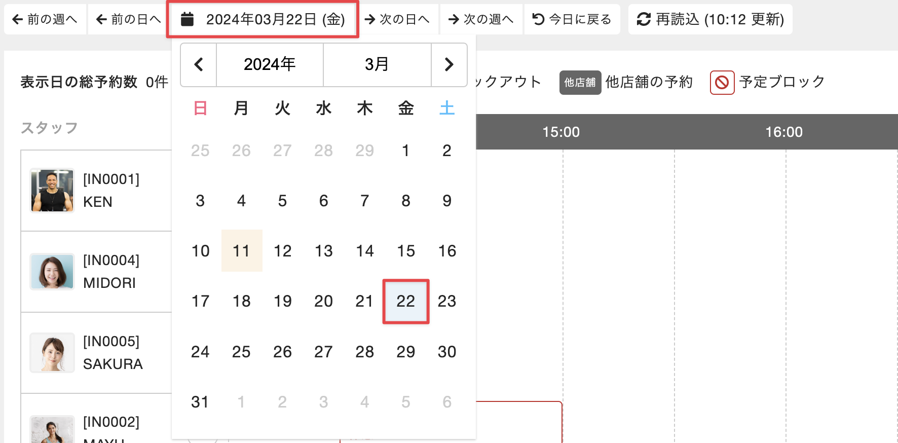 管理サイトからの予約操作であれば、過去分のレッスン予約を行うことも可能です。