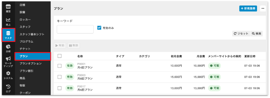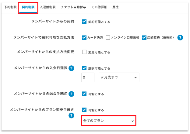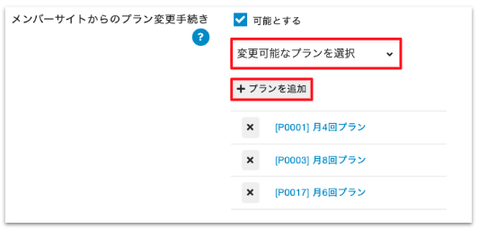 メンバーサイトからプラン変更手続きを行うには、管理サイト側で設定が必要になります。