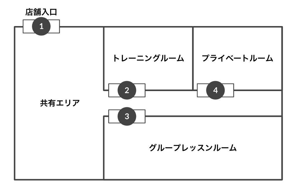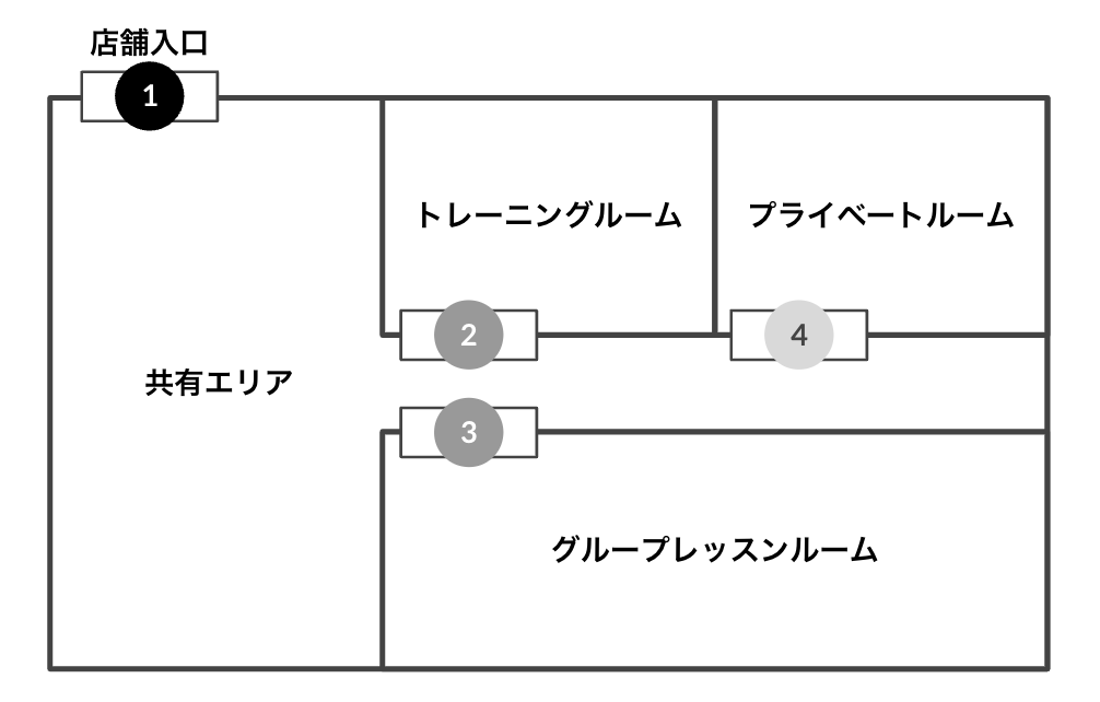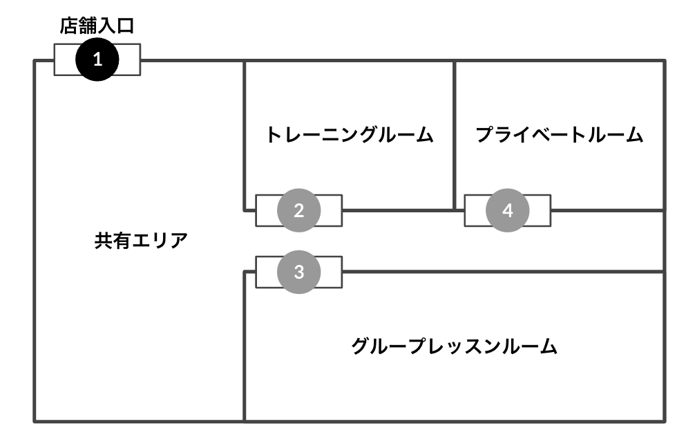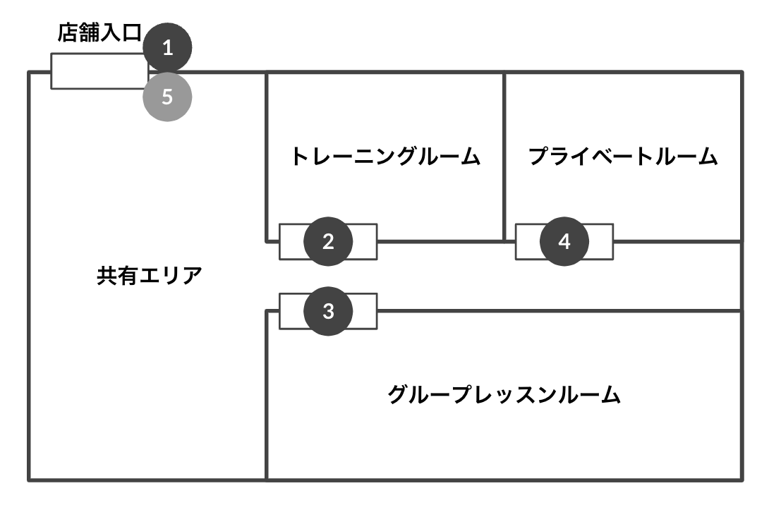 | 5 | 共有エリア | ([設置箇所]が「出口」 のため設定なし) | 全プラン(休会以外) 全予約 |