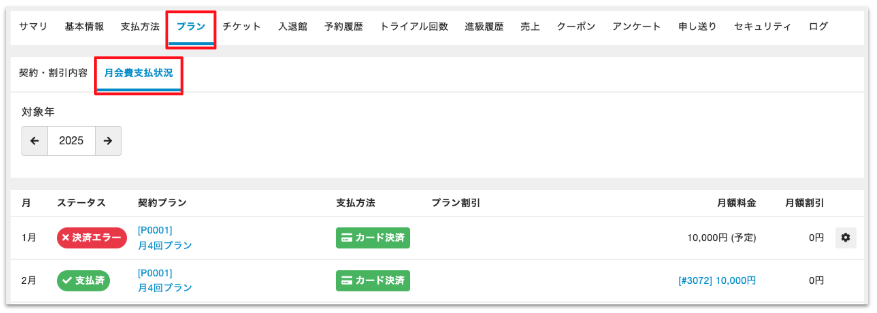 月会費の決済エラーが、契約プランの適用期間外となっていることが原因です。
