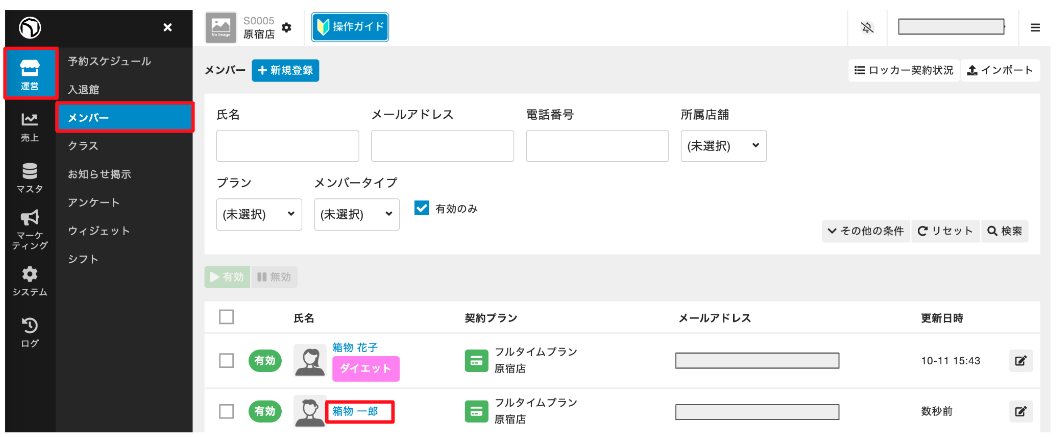 メンバー詳細画面から、お客様にメンバータイプを設定することができます。