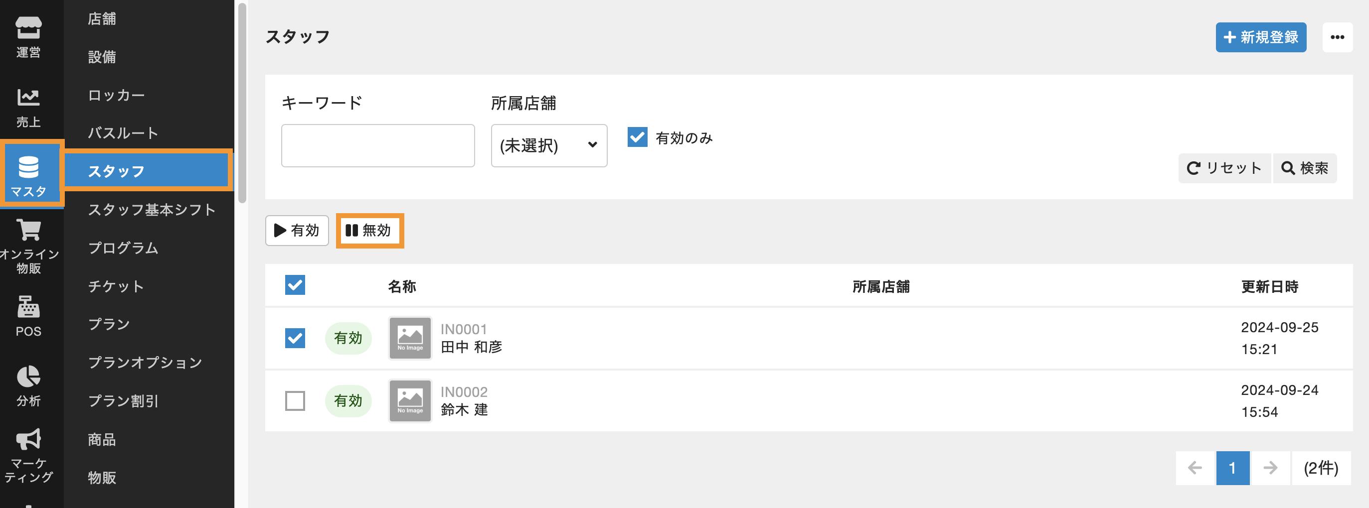 ※スタッフを有効に戻すには、再度チェックを入れて[有効]をクリックします。