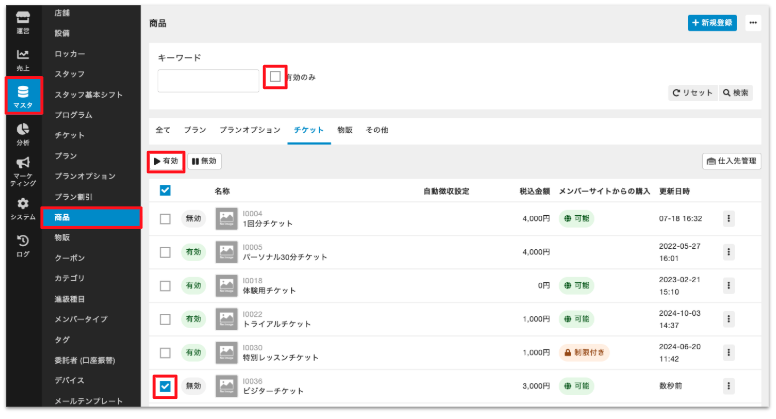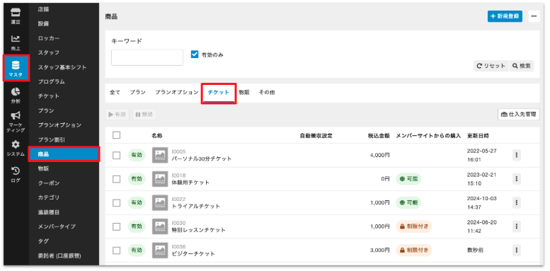 5.該当のプランを契約していただくか、チケット商品の購入可能なプランの設定を見直していただき、お客様にメンバーサイトから購入いただくようご案内ください。