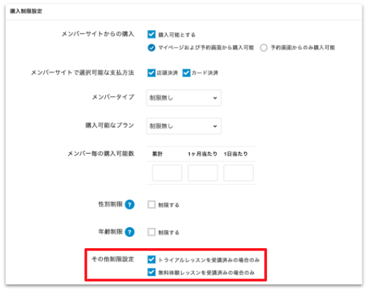 5.トライアル・初回無料体験レッスンの受講条件の設定を変更するか、受講条件を満たせるようにお客様にご案内ください。