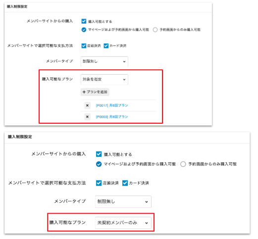 もしくは、「未契約メンバーのみ」の設定で、お客様がプランを契約中であれば購入不可となります。