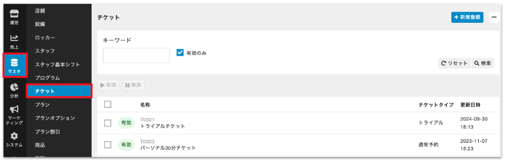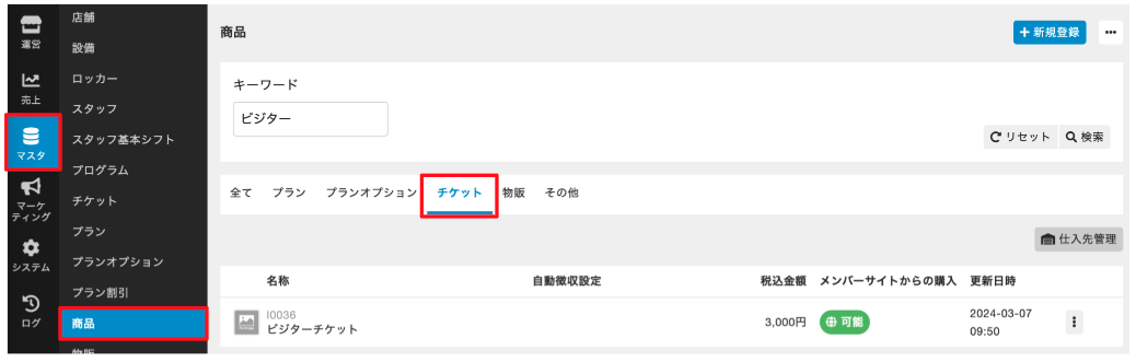 チケットを販売するためには、チケットマスタの作成と商品マスタの作成の2つが必要になります。