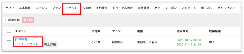 2.[チケット]から誤って減らしてしまったチケットをクリックします。