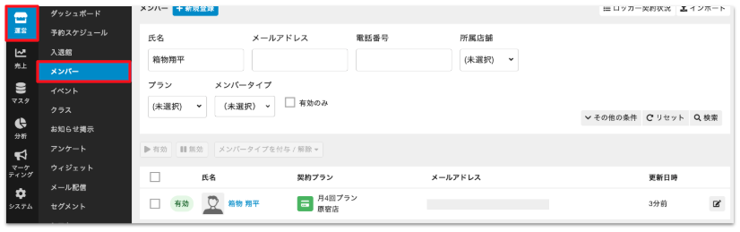 1.[運営]>[メンバー]から該当のお客様を選択し詳細画面を表示します。