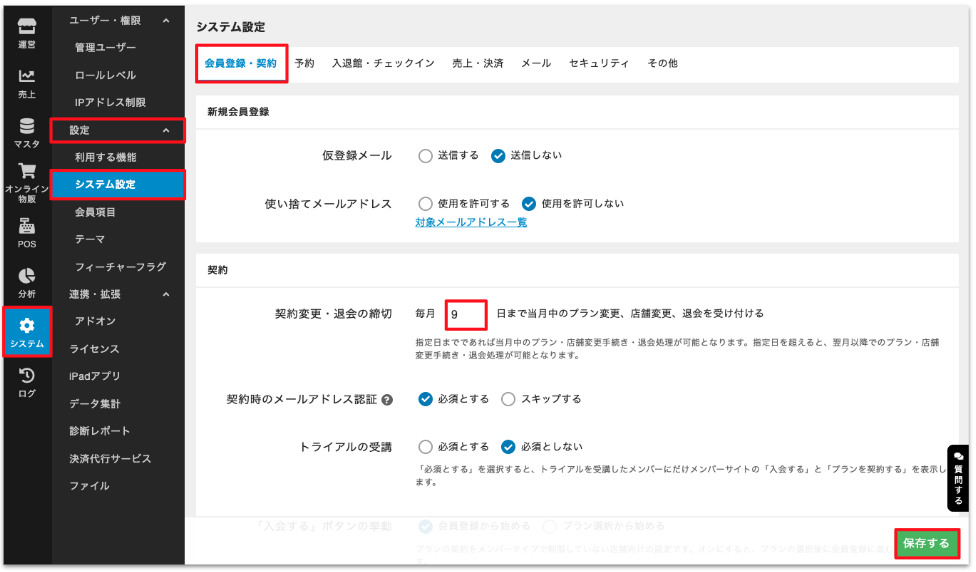 請求データの作成日以降に締め日を設定すると、請求データの作成後にプランが変更された場合などで二重請求や請求漏れが発生するため、ご注意ください。