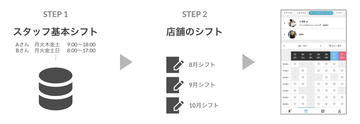 スタッフ基本シフトと店舗のシフトの違いについて、以下をご 確認ください。