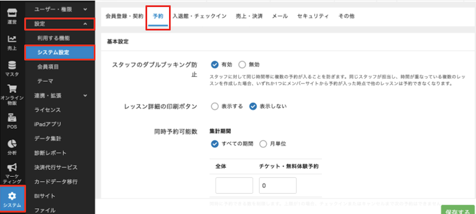 お客様がプランを契約していない場合は、システム設定の同時予約可能数の設定状況に対して、お客様の予約数が上限に達していないかご確認ください。