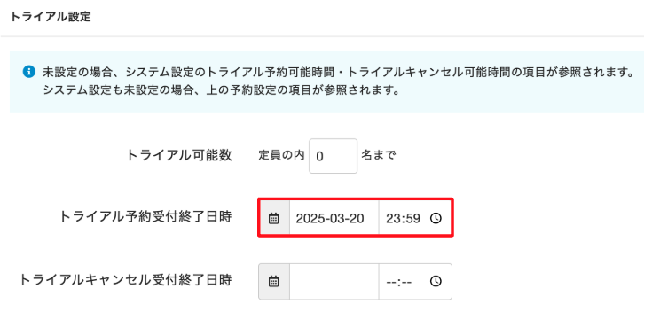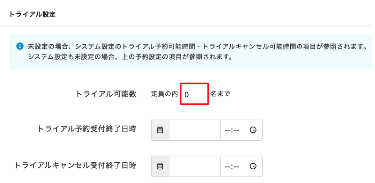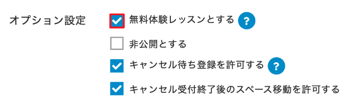 - レッスンの設定でトライアル予約や無料体験予約が受付可能となっている