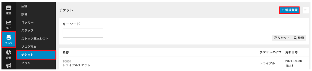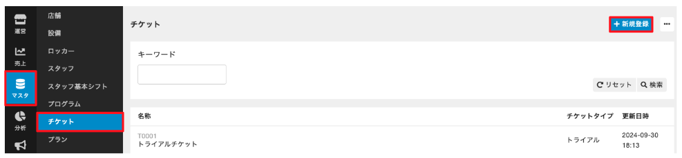 また、「全体」と「チケット・無料体験予約」は空欄で設定します。
