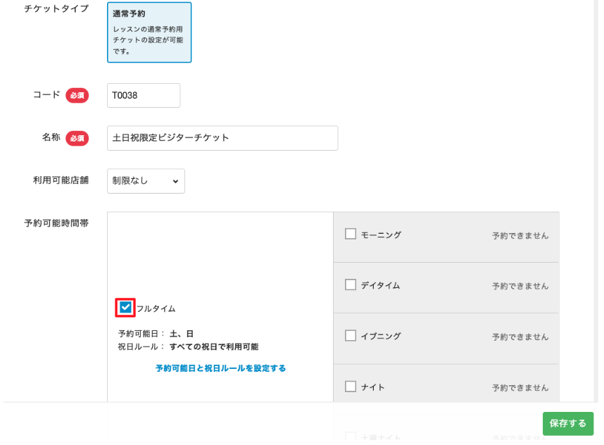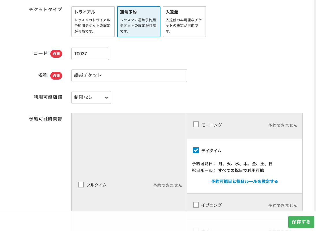 以上で、プラン・チケット・自由枠予約の設定が完了になります。