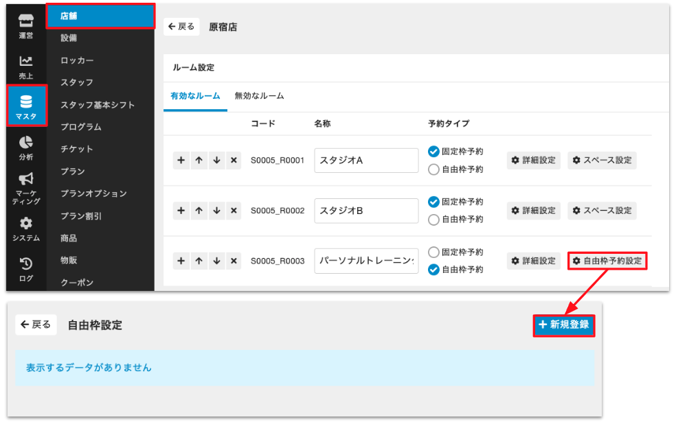 - 店舗の営業時間の設定、自由枠予約の予約カテゴリ設定