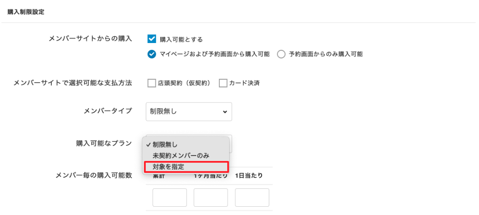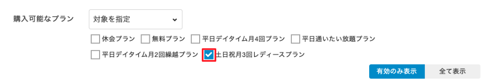 また、[利用可能プラン]は「本プランのみ」と設定します。