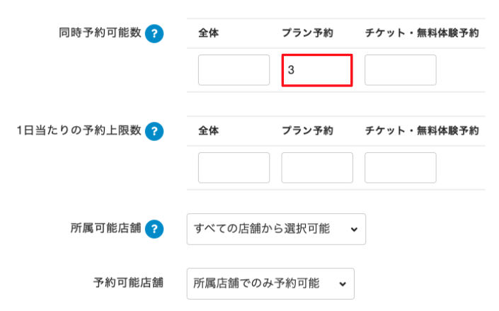 6.[同 時予約可能数]の「プラン予約」を「3」と設定します。