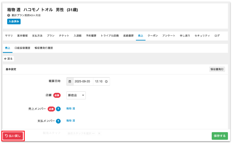 払い戻し方法は決済方法によって異なりますので、「管理サイトから払い戻し(返金)を行う方法」のFAQをご参考ください。