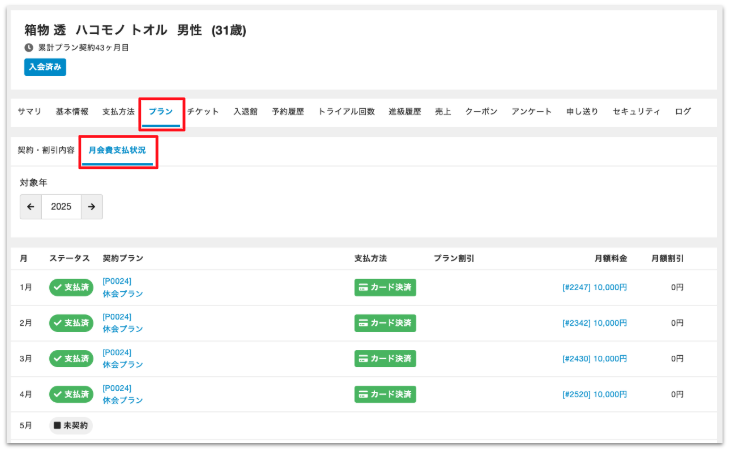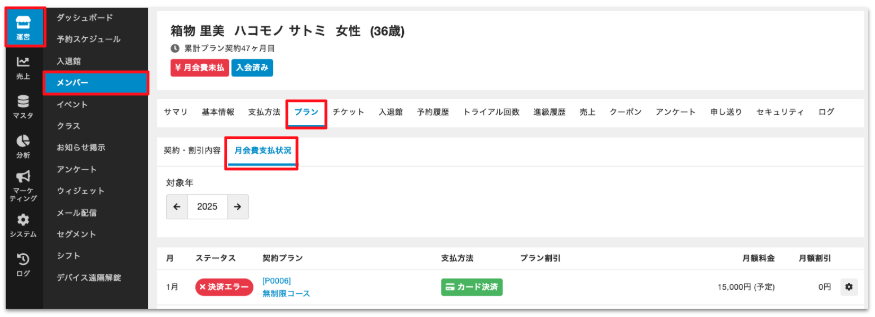 - 月会費の決済エラーがあるため、契約プランの削除を行うことはできません。未払金処理を行ってください。[MBR_000193]