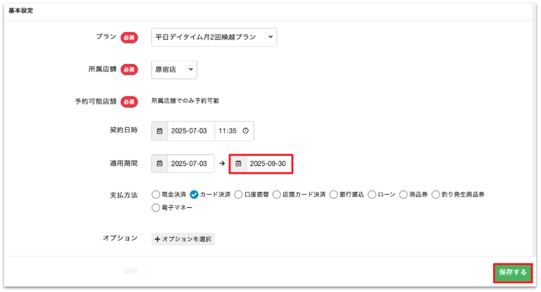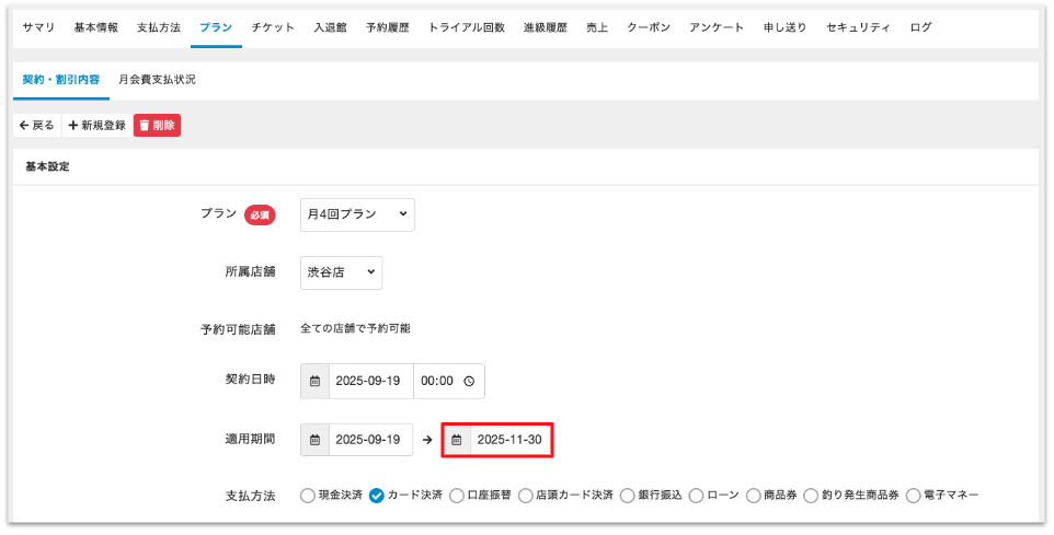 7.プランの適用終了日を登録することで退会扱いとなります。